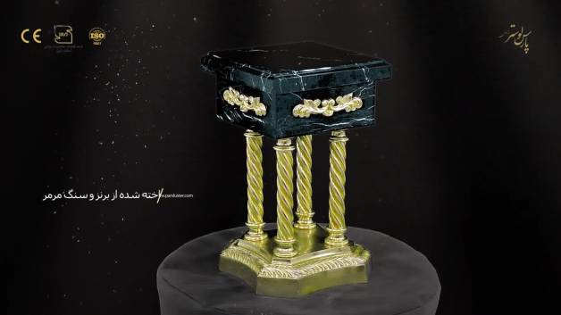پوشش قسمتهای برنزی این میز با استفاده از آبکاری طرح طلا و به روش الکتروفورتیک با ضمانت 10 ساله انجام شده است.