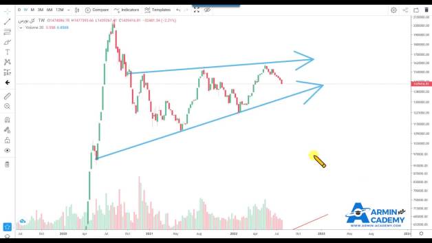تحلیل شاخص کل بورس تهران - قیمت بعد از یک ریزش سنگینی که داشت، بعد از اصلاح 80% درصدی که داشت وارد فاز زیگزاگ شد و بعد وارد یک پترن کنج مانندی شده و اگر این فشار فروش تایید بشه قطعا ما یک ریزش بزرگی رو توی شاخص کل بورس خواهیم داشت که به سمت زیر 1میلیون خواهد رفت