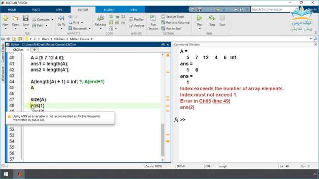 مدیریت بردارها، آموزش نرم افزار متلب (Matlab) - مقدماتی – آکادمی نیک درس