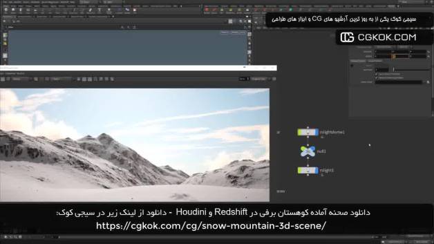 دانلود صحنه آماده کوهستان برفی در Redshift و Houdini از سیجی کوک: https://cgkok.com/cg/snow-mountain-3d-scene/